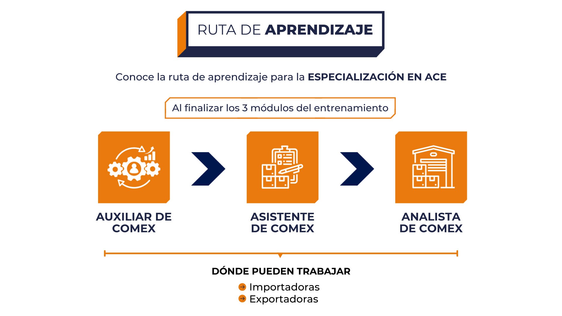 Preparar al participante para integrarse con seguridad en empresas importadoras y exportadoras, desarrollando las competencias necesarias para crecer progresivamente desde posiciones operativas hasta el rol de Analista de Comercio Exterior dentro de la cadena de suministro.